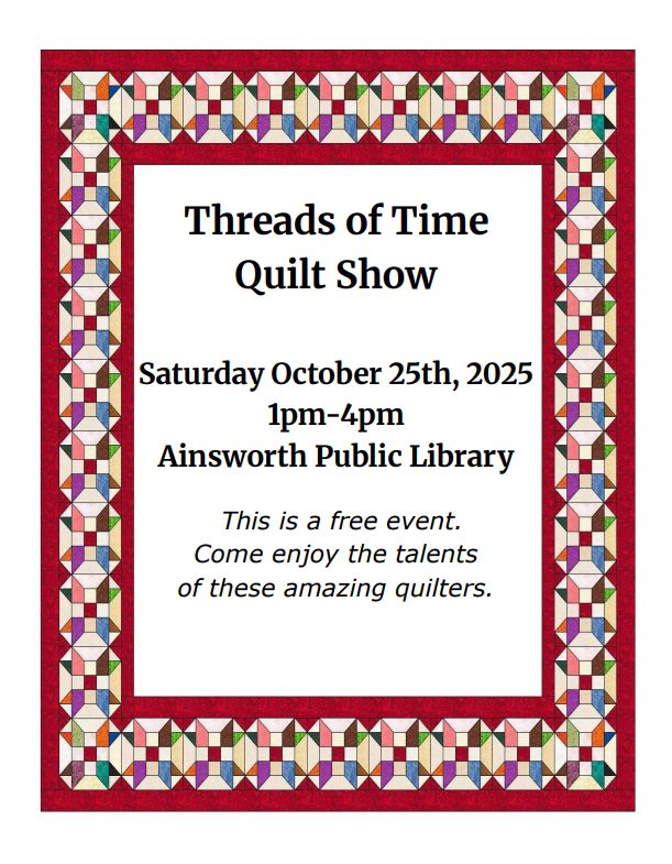 November 5, 2025 at 5 p.m. at the Ainsworth Public Library.