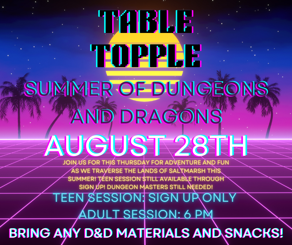 Also returning this year is Snack Attack! We’re switching things up a bit. One, we’ll be meeting every month now instead of every other month. Two, to ensure we don’t run out of book club kits, we’ll be doing themes where our kids can choose any graphic novel they want with said theme! There will be a small pile of books behind the counter where kids can choose from if they so desire! Come on by anytime to pick up a graphic novel, or bring your own! We meet on Thursday September 25th @ 3:30.
