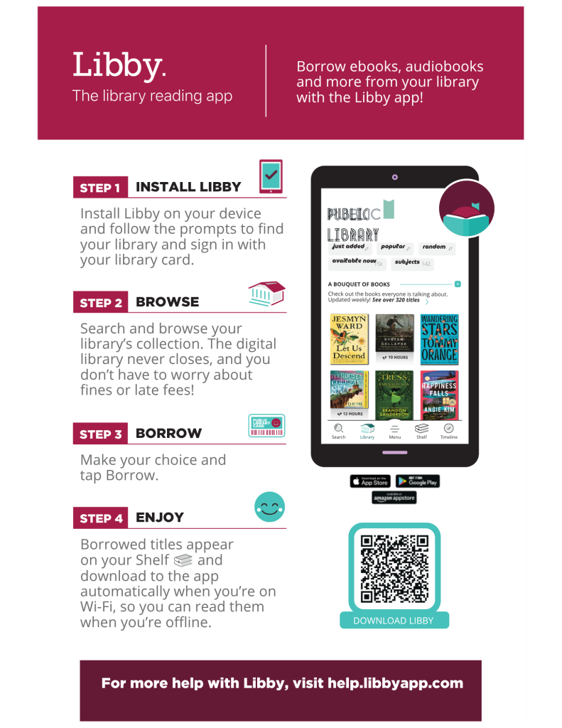 Libby is an application service available to all Battle Creek Library patrons. It is the new and more convenient way access the Nebraska OverDrive Library from your phone or other mobile devices. Click the Libby link on the sidebar to download Libby and gain access to everything the Nebraska OverDrive has to offer. Once downloaded click the “Add Library” link located under “Your Libraries” From there look up “Battle Creek Public Library” or the zip code to Battle Creek, and click on Nebraska OverDrive Libraries. Finally from here library patrons must enter their barcode ID along with our password to gain access. Call the Library for your ID and the password